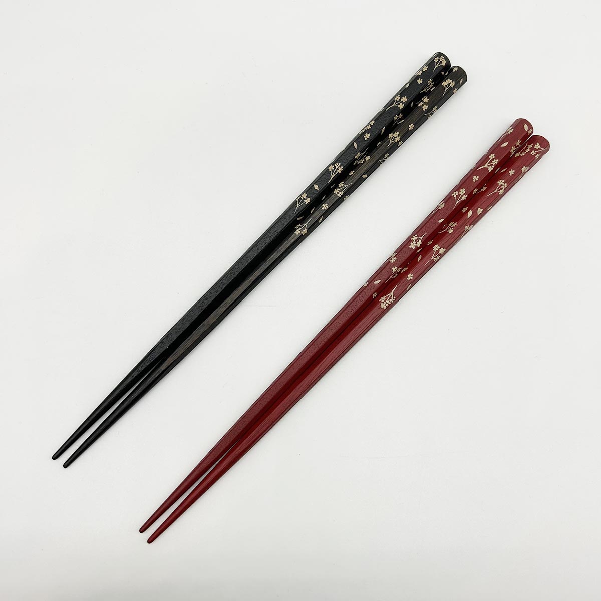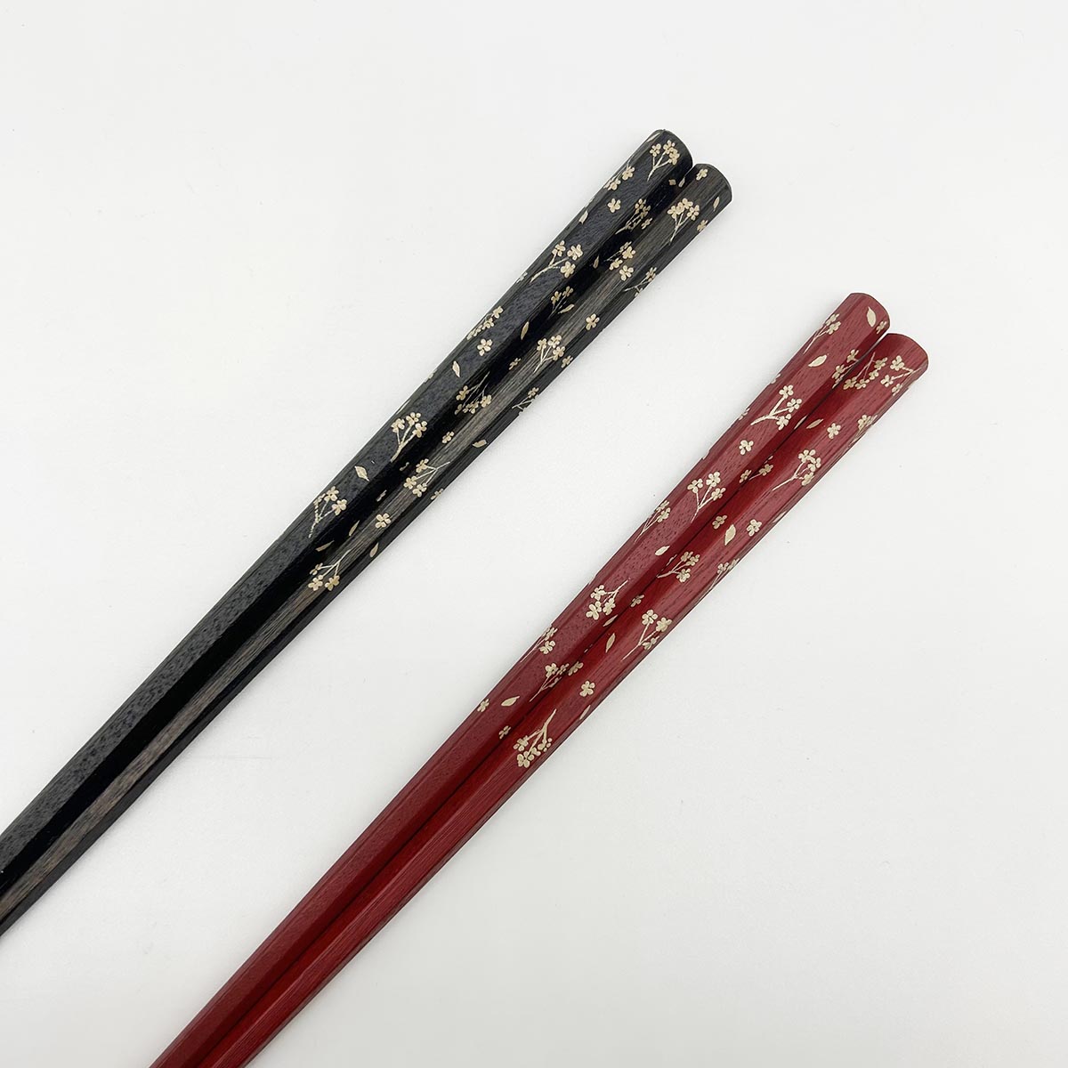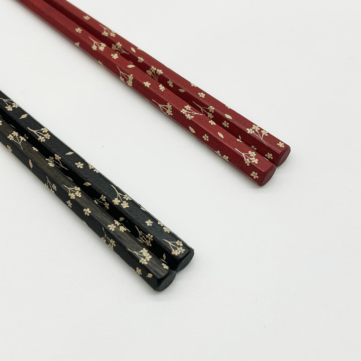 越前塗 箸 六角拭漆小花ちらし/六角赤拭漆小花ちらし 各種