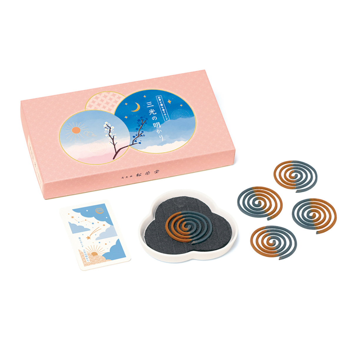 自然の光をモチーフにしたお香と香皿、香りカードのセットです。
