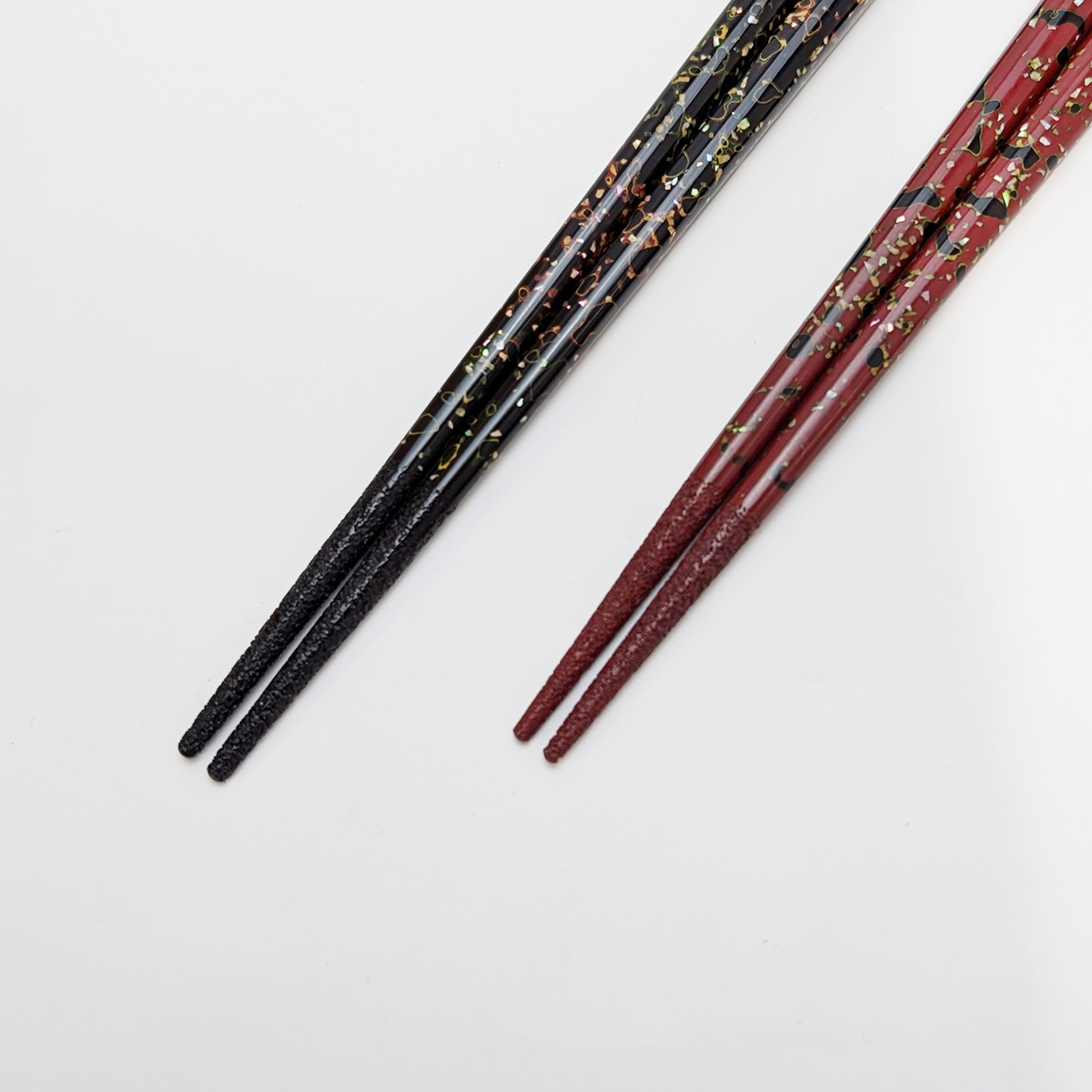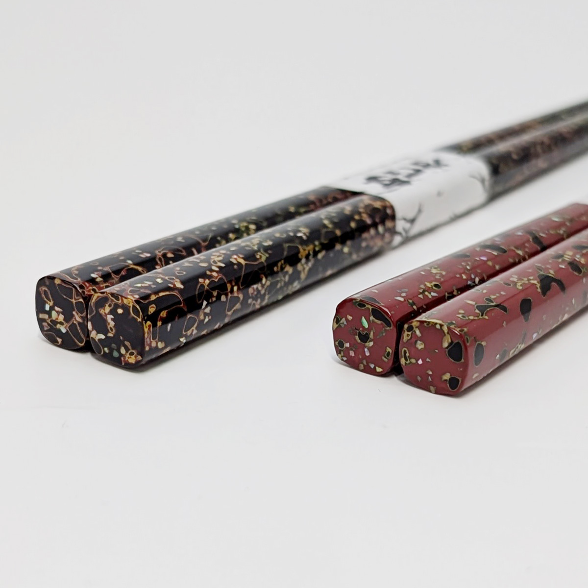 貝蒔唐塗は高級感あるきらびやかな津軽塗のお箸。