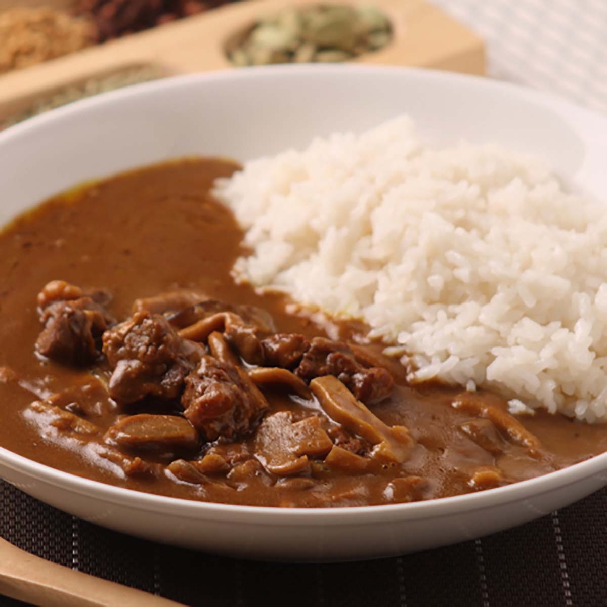 牛肉とマッシュルームを厳選したスパイスと自家製ブイヨンのコク深いカレーソースで煮込んだ欧風カレーです。