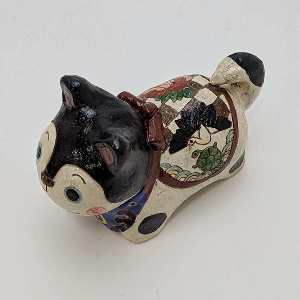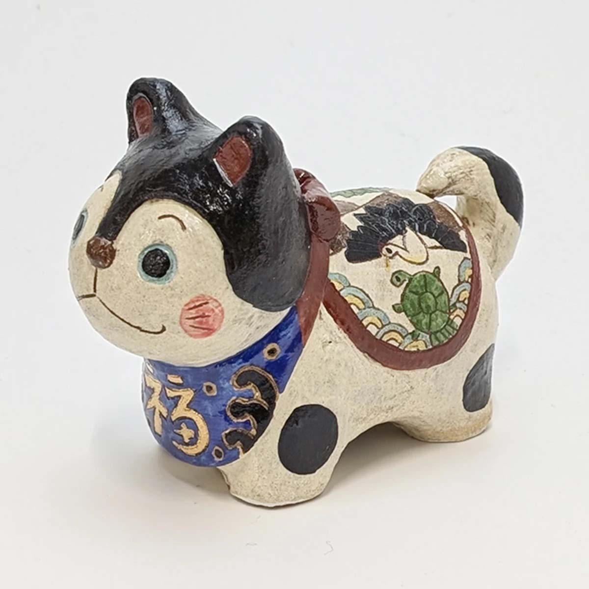 犬に竹の籠(竹冠)を被せると「笑」の字になることから、「笑顔が絶えないように」という洒落も込められている福犬。