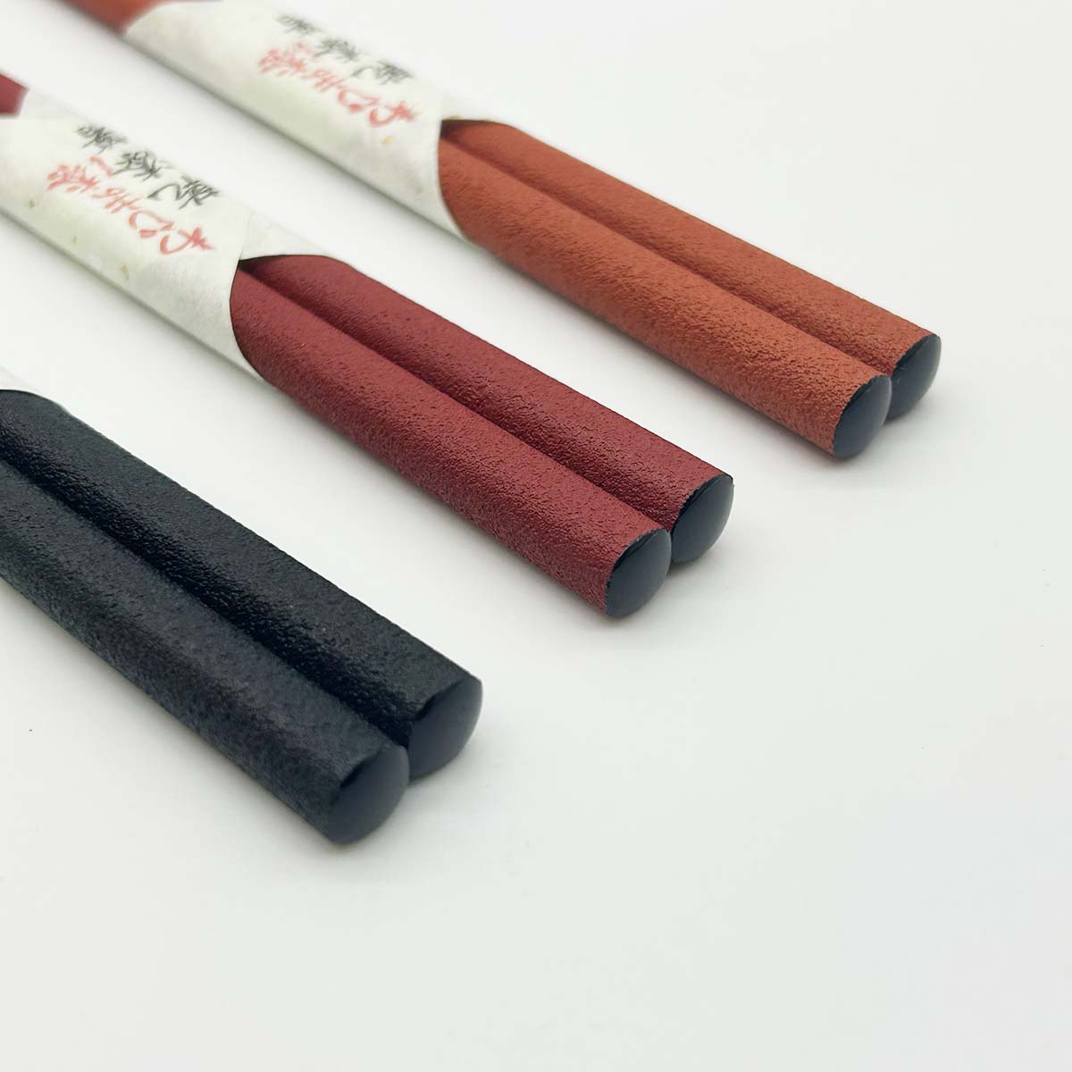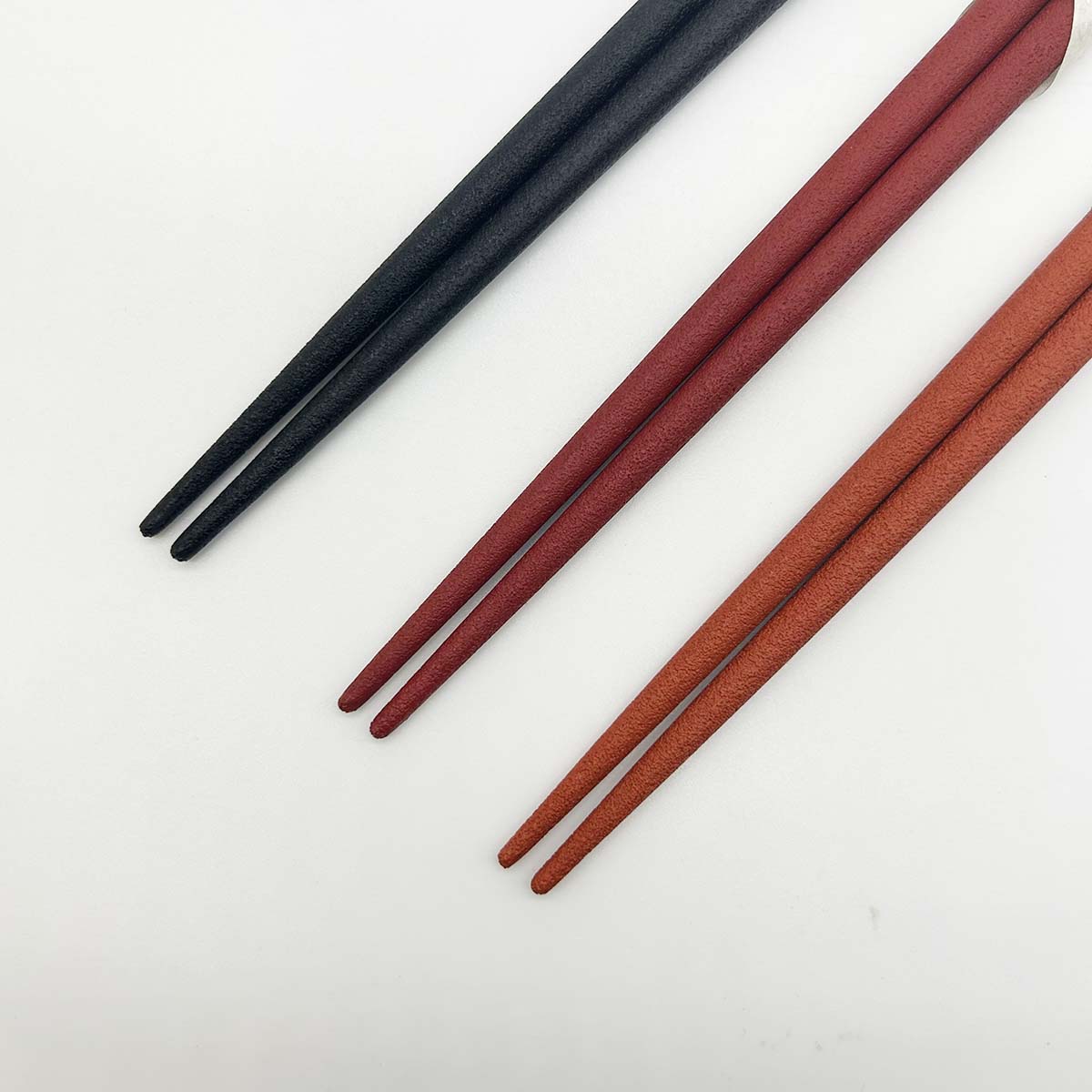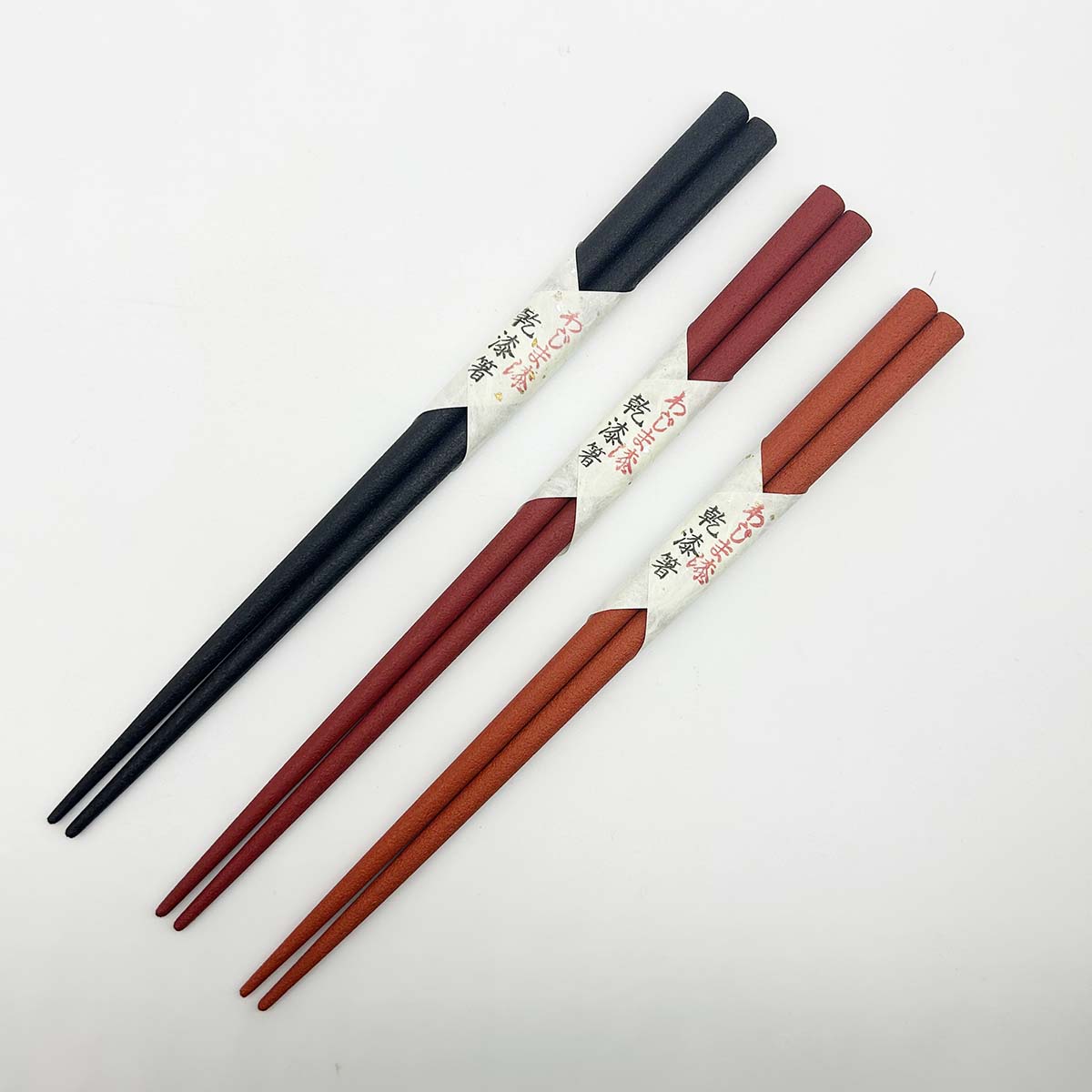 乾燥させた漆を細かく粉砕した“乾漆粉”をまとわせ、さらに漆を重ねて仕上げたお箸です。