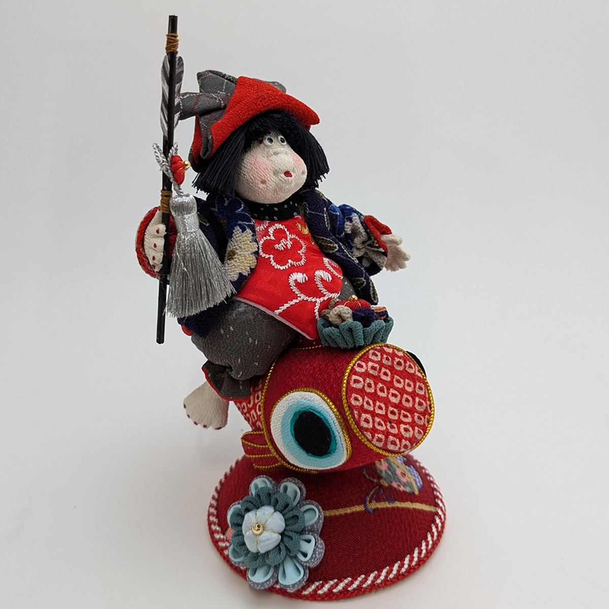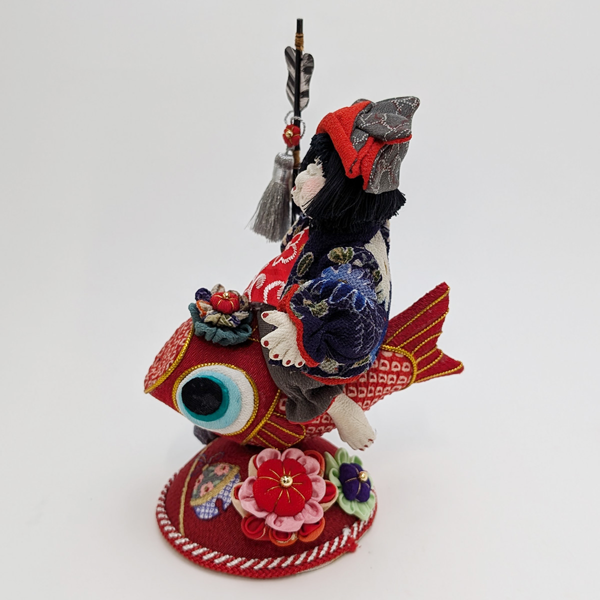 そんな上原装子さんの思いから生まれた「五月人形 鯉のり童」。古布を使って楽しい人形を作りたいという気持ちが、上原さんのモノづくりの原点です。すべて上原さんの頭の中のイメージで作られ、作るその時その時で顔が違う、という点も手作りの良さであり、楽しんで頂きたいポイントでもあります。