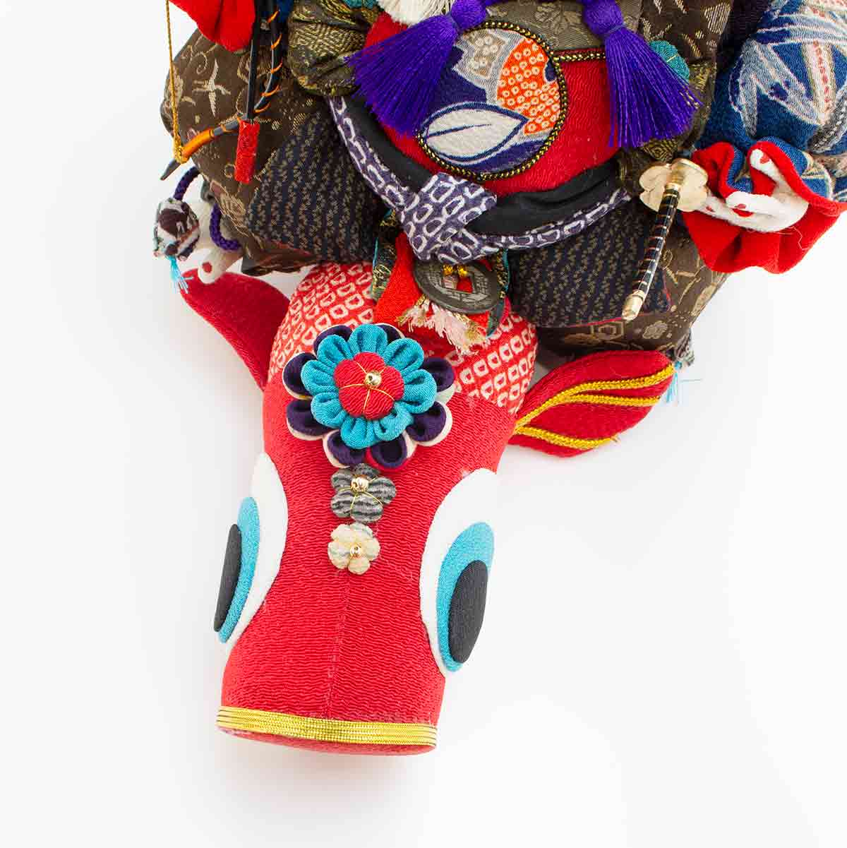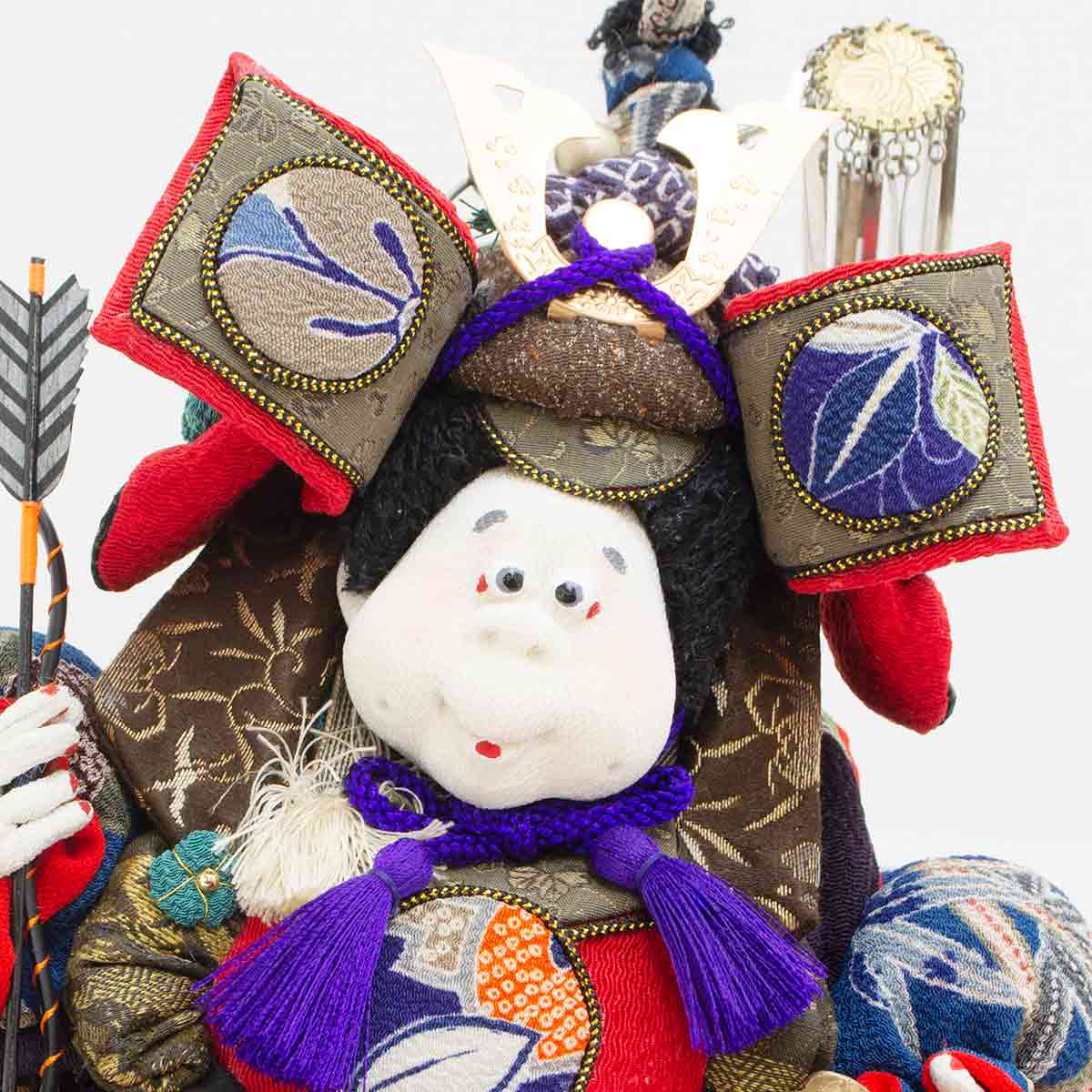 そんな上原装子さんの思いから生まれた「五月人形」。古布を使って楽しい人形を作りたいという気持ちが、上原さんのモノづくりの原点です。すべて上原さんの頭の中のイメージで作られ、作るその時その時で顔が違う、という点も手作りの良さであり、楽しんで頂きたいポイントでもあります。