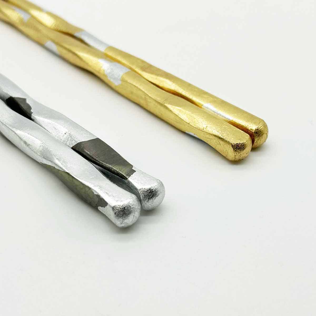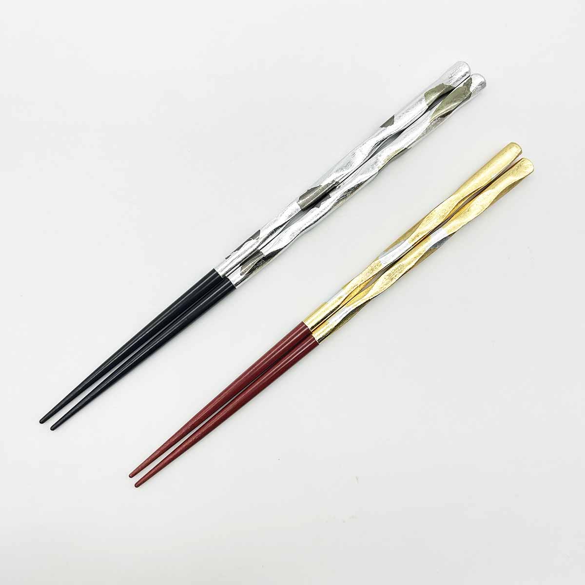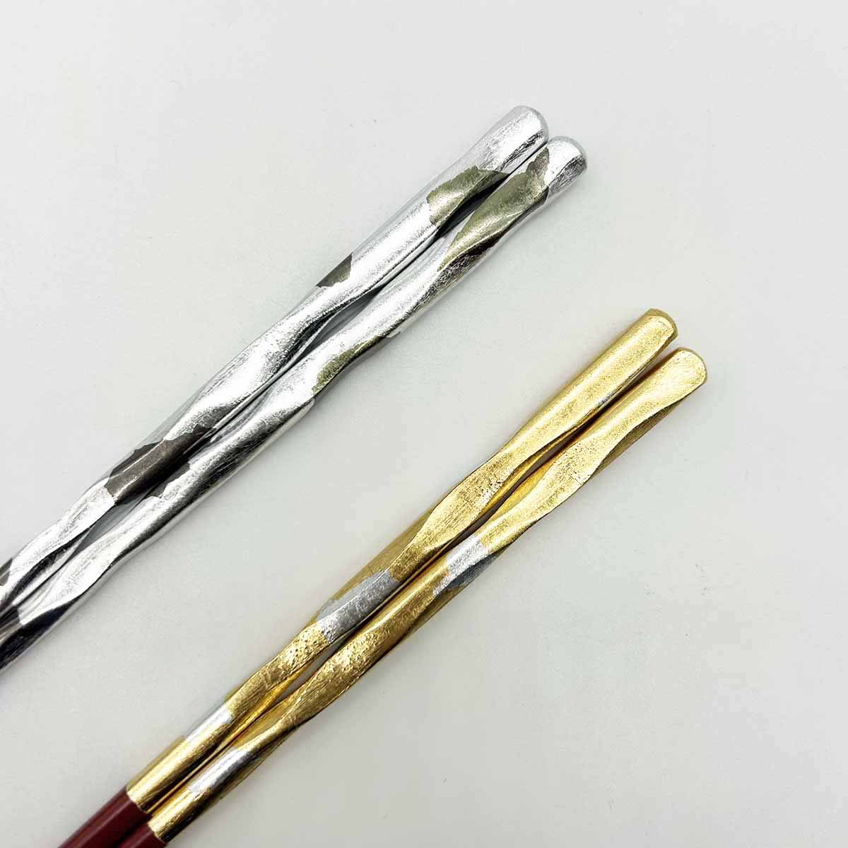 金箔を思わせる華やかな持ち手と、落ち着いた色合いの箸先が美しいコントラストを生み出し、いつもの食卓を少し特別な雰囲気にしてくれます。